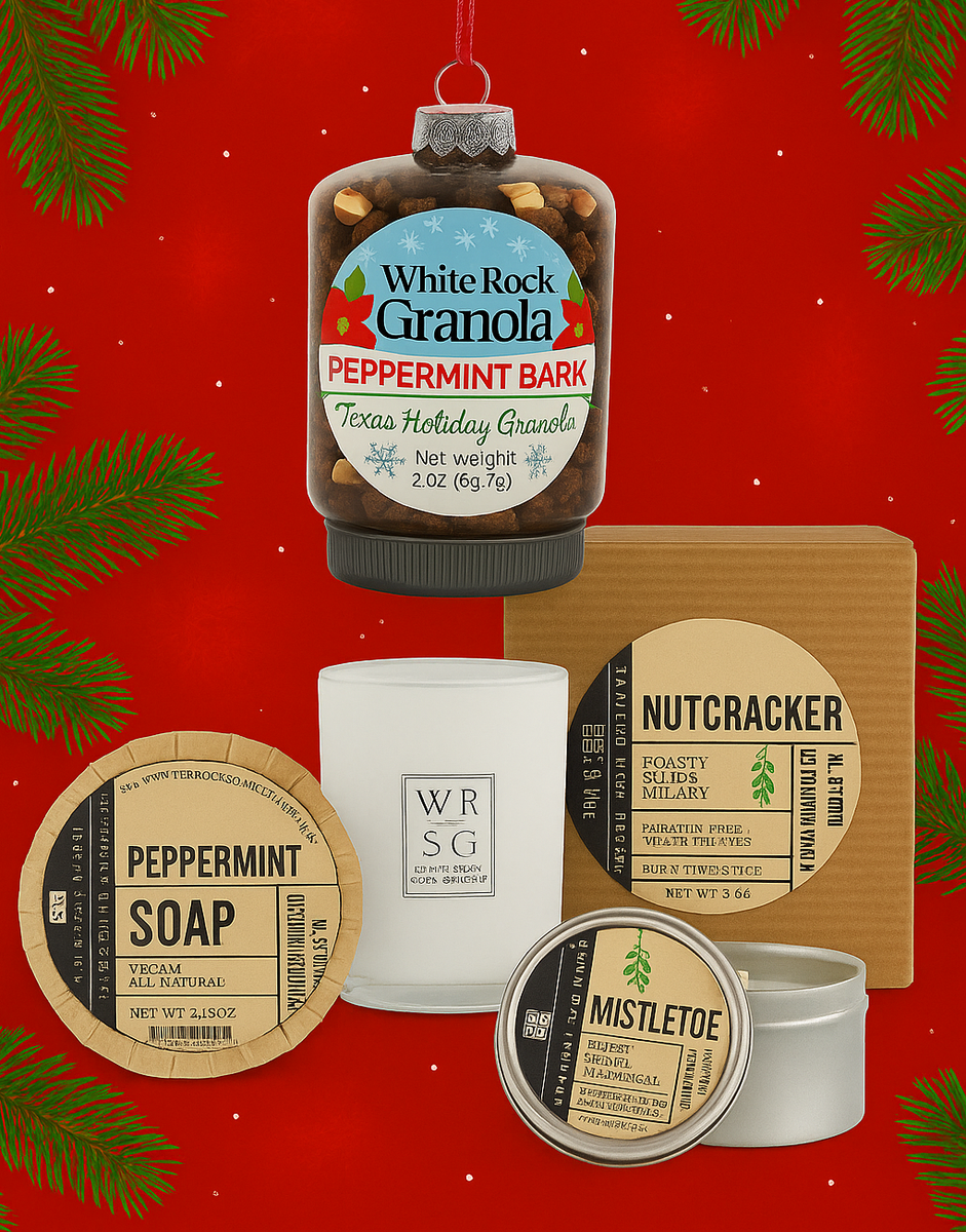 ALL orders include a FREE White Rock Granola ornament filled with our Peppermint Bark Granola.
