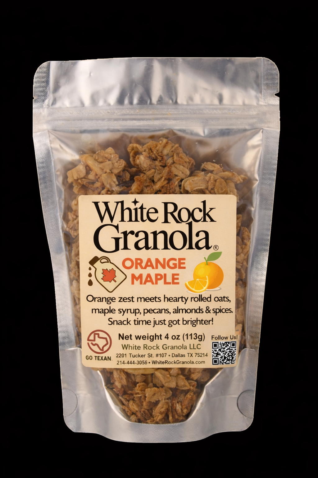 Orange Maple combines refreshing orange zest, crunchy pecans, slivered almonds and sweet maple syrup to give this granola the perfect blend of spunky flavor for breakfast, snacking or anytime. Our original and most-popular flavor.